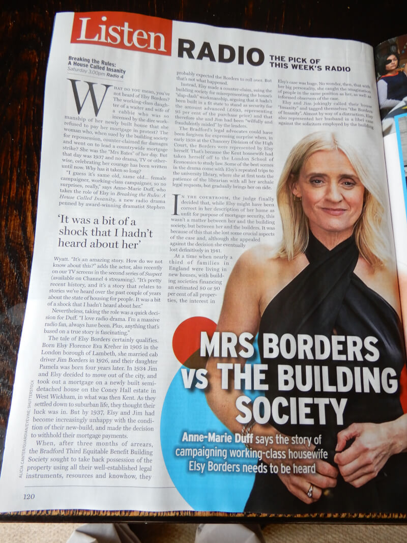 In the 27th July to 2nd August edition of Radio Times, Anne-Marie talks about Elsy Borders and A House Called Insanity.