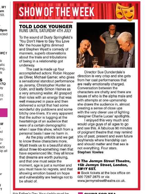 Page 77 of the Pride in London free magazine is devoted to Told Look Younger.